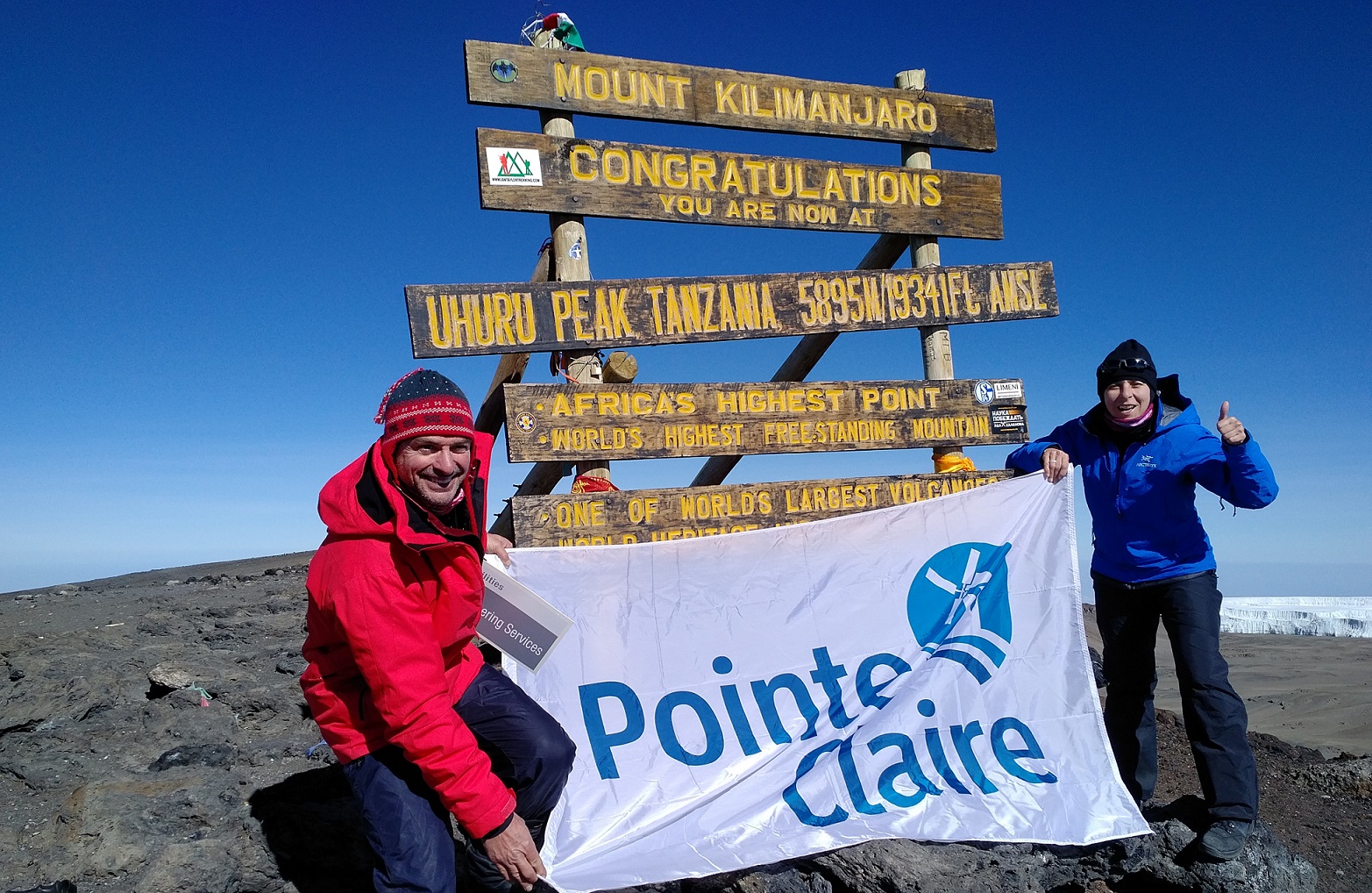 The mayor of Pointe-Claire, Morris Trudeau, and City Council members are proud to announce that the City's flag was flown at the top of Kilimanjaro, the world's fourth highest peak, in Africa, at an altitude of 5,895 metres.