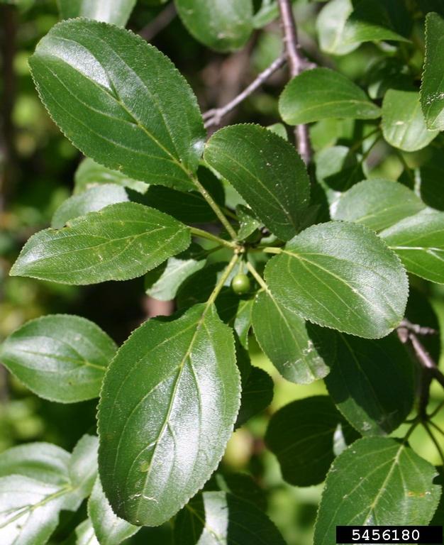 Feuille de nerprun bourdaine : Chris Evans, Université de l'Illinois, Bugwood.org