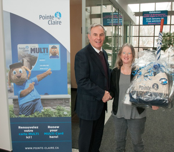 Le maire de la Ville de Pointe-Claire, John Belvedere était heureux de recevoir les deux premières gagnantes du concours pour le renouvellement de la carte MULTI, lancé en octobre dernier.
